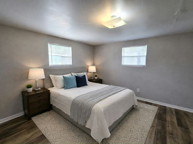 Own your own home in a quiet, well-maintained neighborhood! This 2 bed/1 bath home has plenty of living space. Every day could feel like a vacation! Call us today to schedule a showing and see all the benefits of living in Happy Day, a professionally managed community. Ask about our special incentive programs! This one won’t last long! Staged using AI